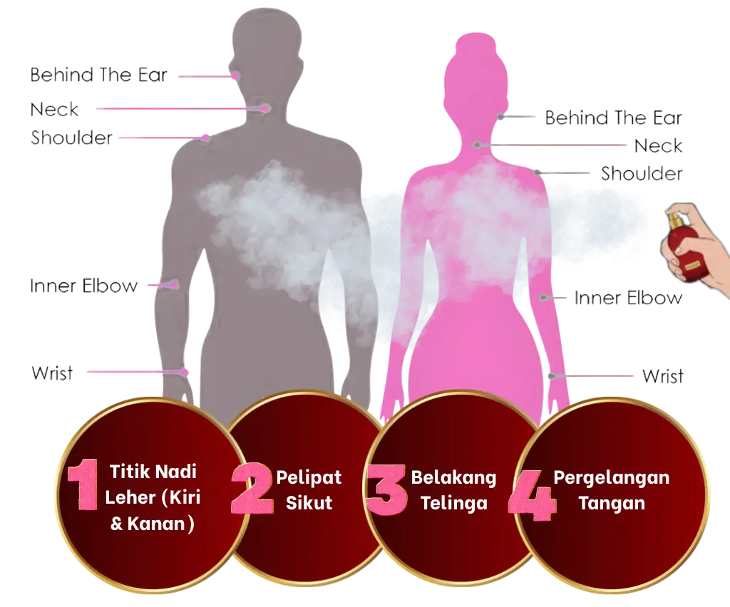 - Jangan Gosok: Selepas sembur di nadi tangan, jangan gosok kedua-dua tangan. Perbuatan ini akan memecahkan molekul feromon dan merosakkan struktur bau. Biarkan ia kering sendiri (air-dry).