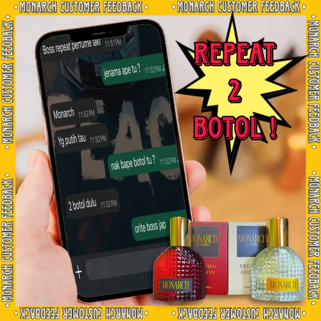 Kami begitu yakin dengan keberkesanan produk ini. Kalau perfume ini tidak capai expectation anda, hubungi kami dalam 7 hari – wang anda akan dipulangkan. Risiko di bahu kami, anda hanya perlu cuba.